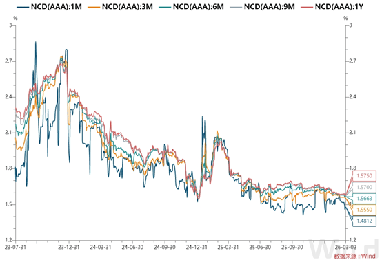全国和主要股份制银行一年期同业存单最新成交在1.575%位置,较上日小幅下行。