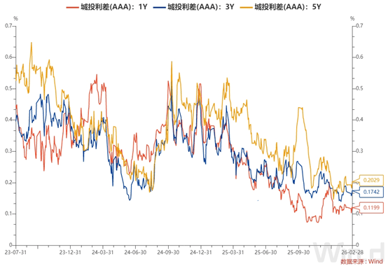 5. 近期城投债(AAA)各期限利差走势及数据