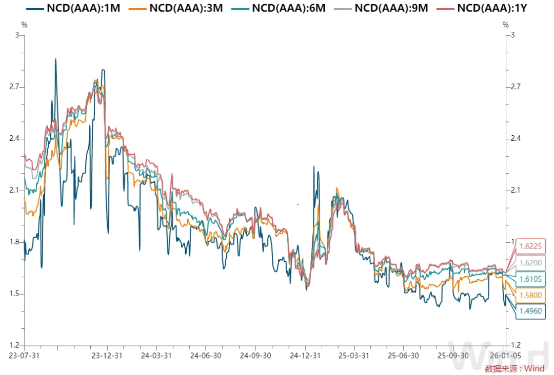 全国和主要股份制银行一年期同业存单最新成交在1.62%附近,较上日小幅下行。