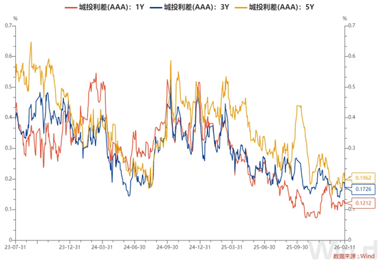 5. 近期城投债(AAA)各期限利差走势及数据